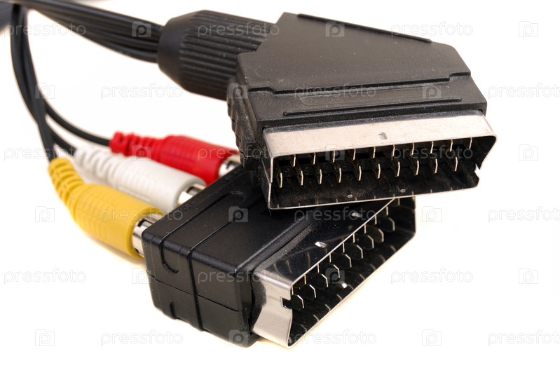 Аудио,видео кабель на белом фоне