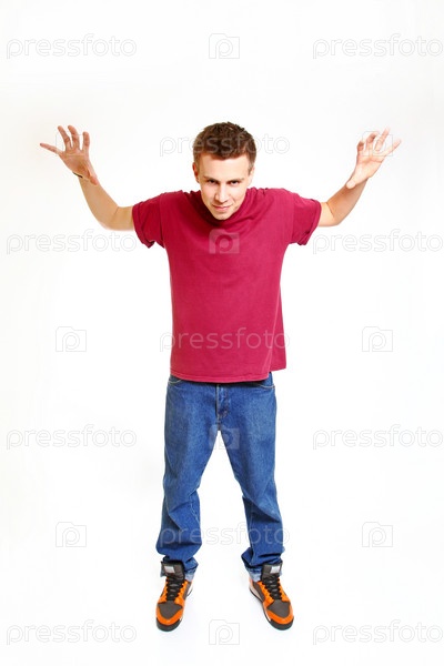 Крутой брейкдансер позирует, изолированный на белом фоне