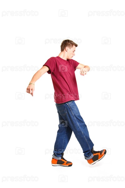 Хип-хоп танцор позирует на белом фоне в студии