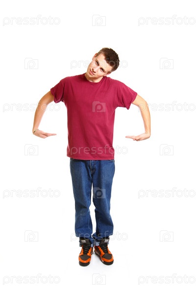 Хип-хоп танцор позирует на белом фоне в студии