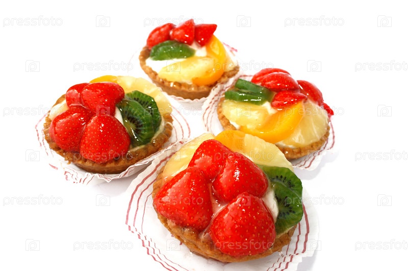 Фруктовые пирожные на белом фоне