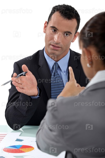 Обсуждение между деловыми женщиной и мужчиной