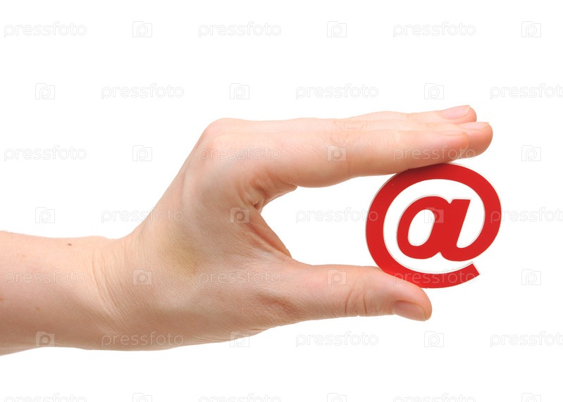 Рука с символом электронной почты, изолированная на белом фоне
