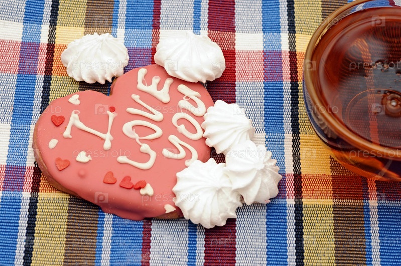 Печенье в форме сердца и чашка чая
