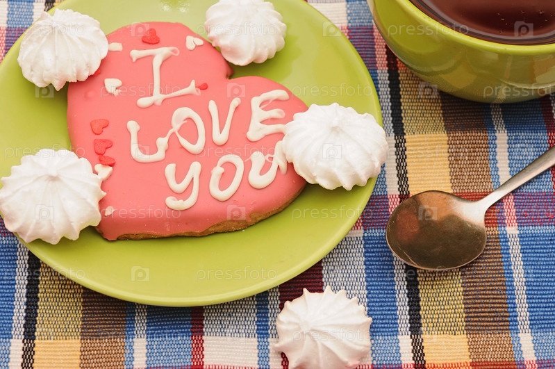 Печенье в форме сердца и чашка чая