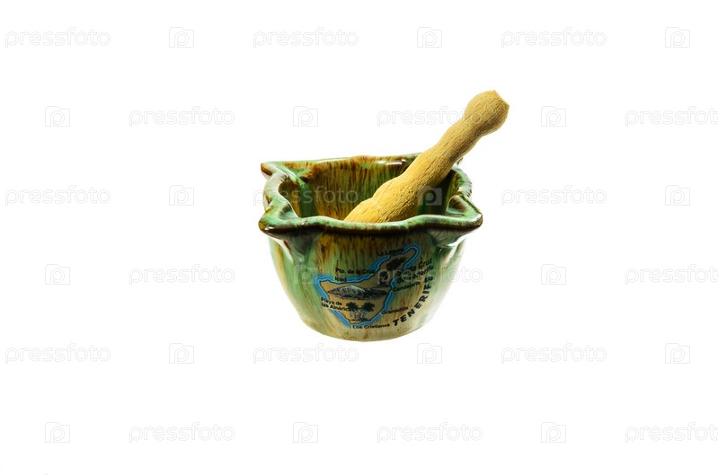Керамическая ступка с деревянным пестиком