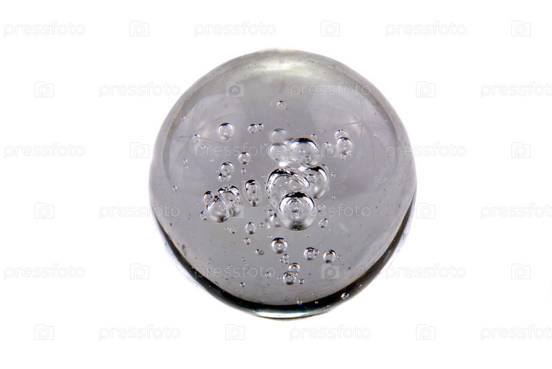Стекло сферическое с пузырьками воздуха на белом фоне