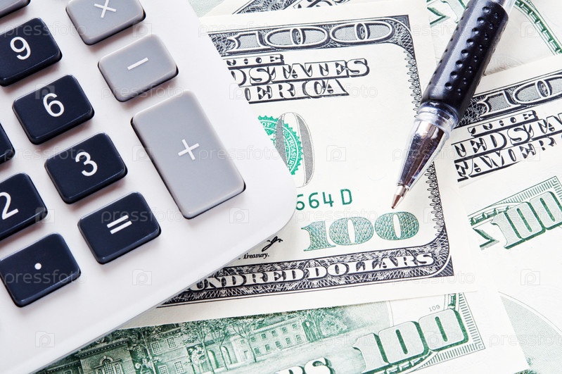 Стодолларовая банкнота, калькулятор и ручка