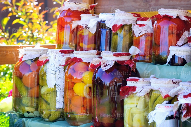 Полки с консервированными фруктами и овощами