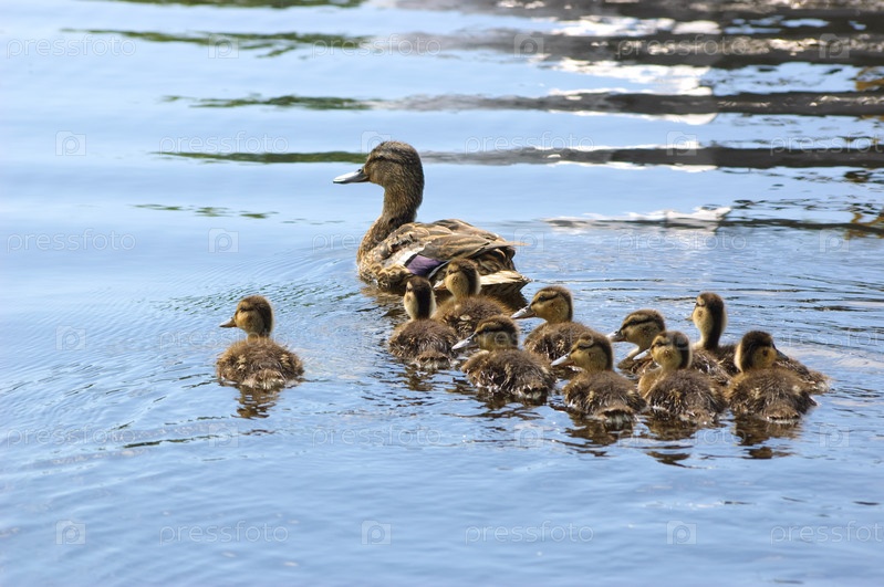 Дикая утка и 10 утят