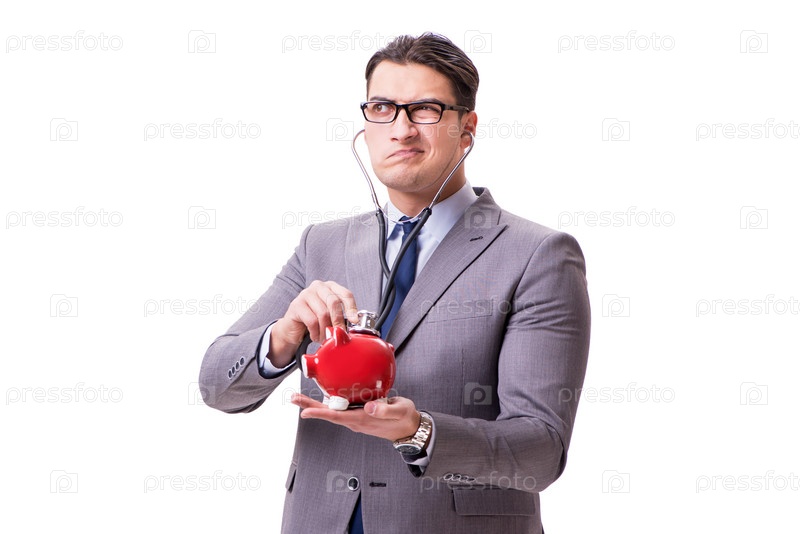 Бизнесмен со стетоскопом и копилкой
