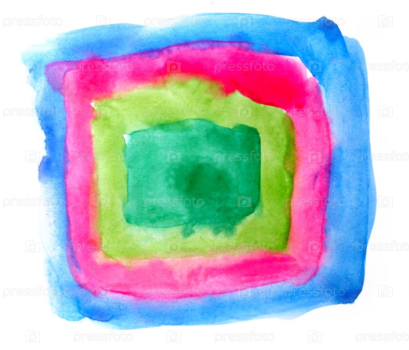 Акварельный красно-сине-зеленый авангардный квадрат, изолированный на белом фоне