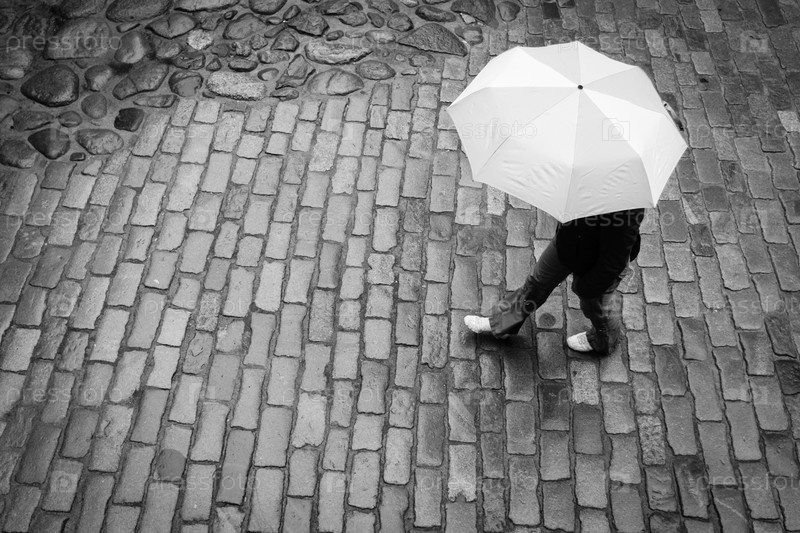 Женщина с зонтиком в дождь