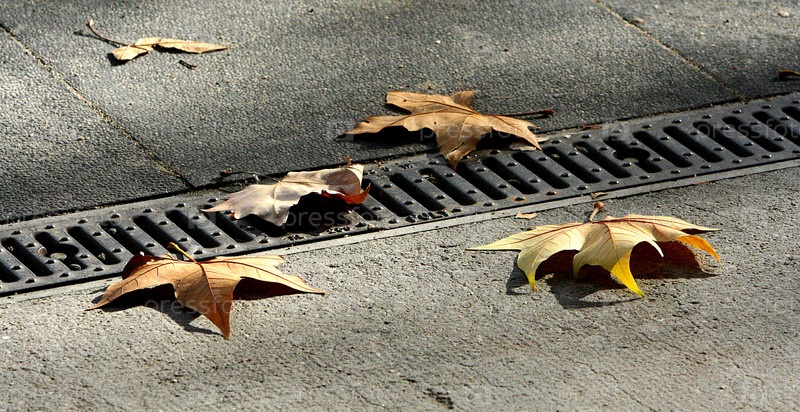 Желтые листья клена, лежащие на асфальте