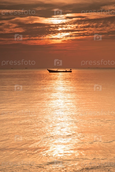 Лодка на море на закате