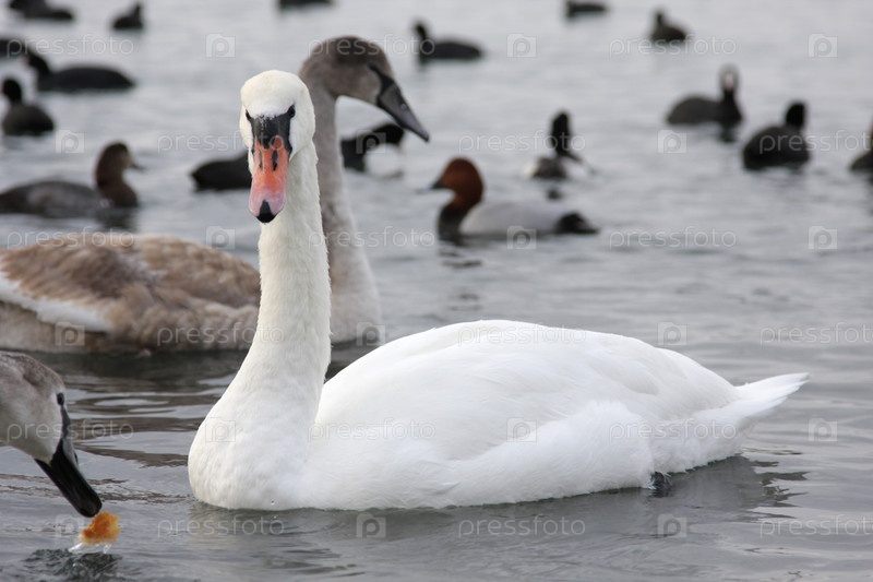 Белый лебедь на воде