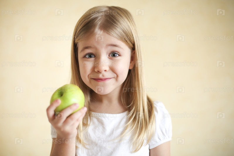 Девочка с зеленым яблоком