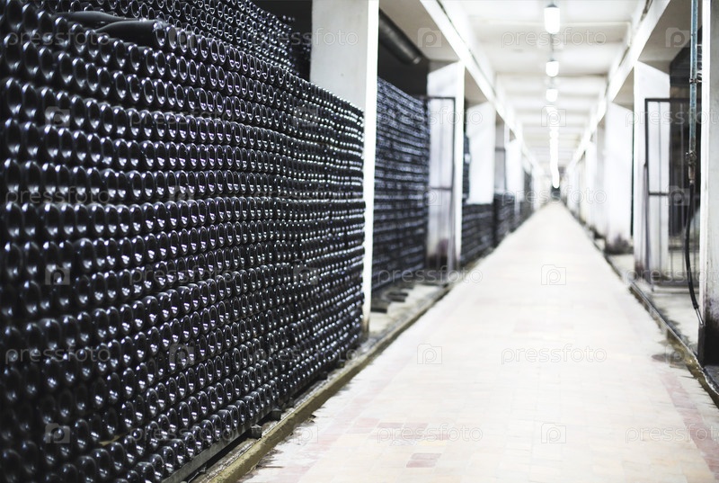 Винные бутылки в винном погребе