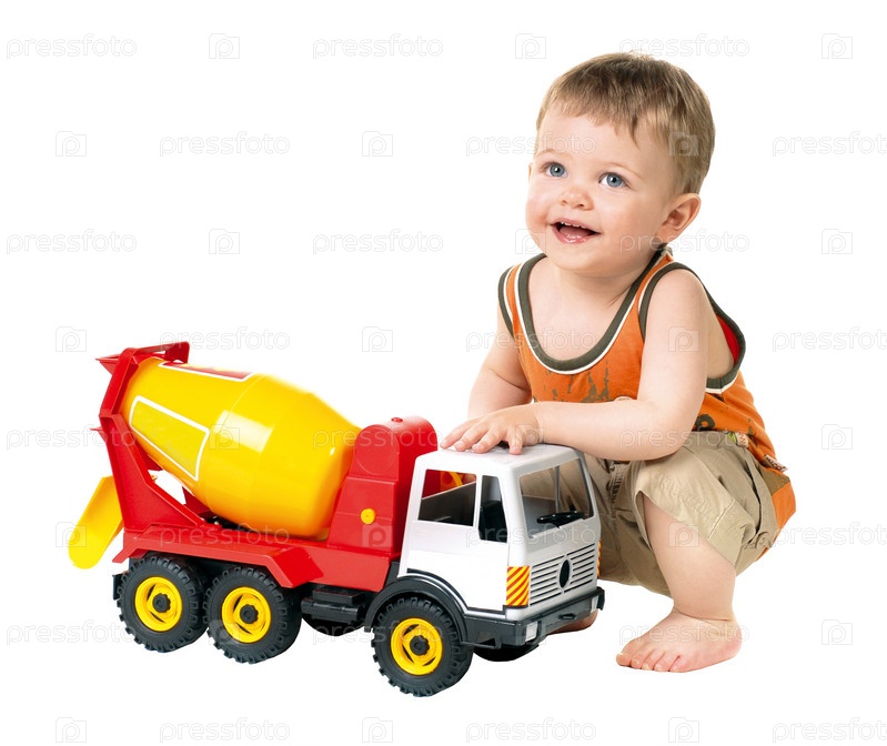Маленький ребенок с игрушечным грузовиком