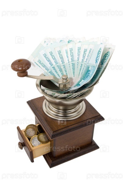 Обесценивание денег - коричневая кофемолка с деньгами