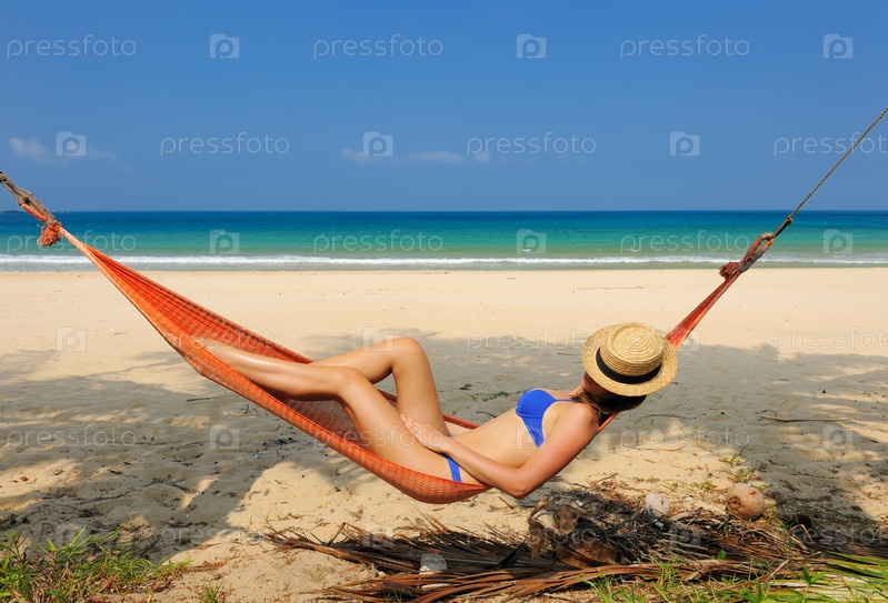Женщина в гамаке на пляже