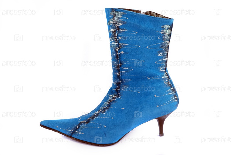 Женский синий сапог на белом фоне