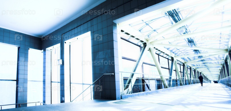Пустой синий коридор возле лестницы
