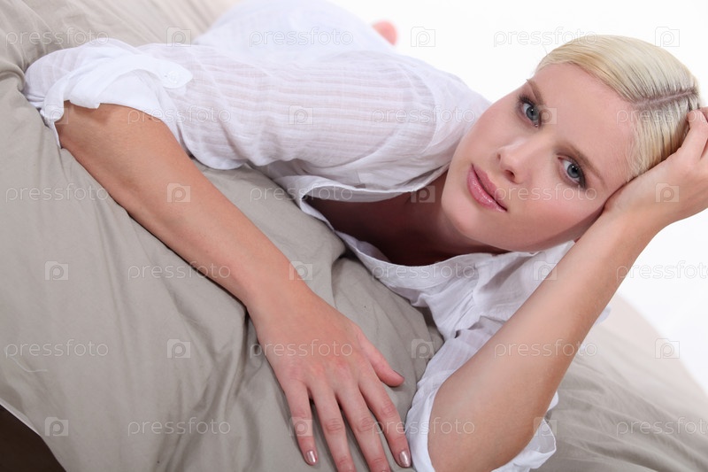 Молодая женщина лежит на кровати