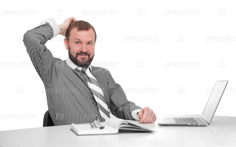 Пожилой деловой человек с ноутбуком