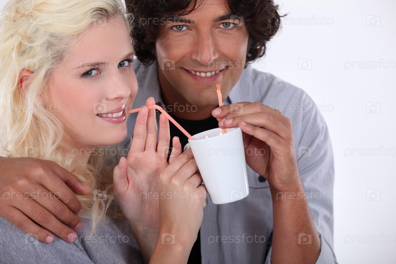 Пара пьет из одного стакана