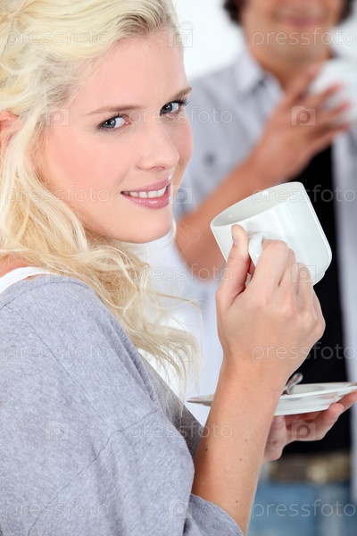 Молодая женщина с горячим напитком