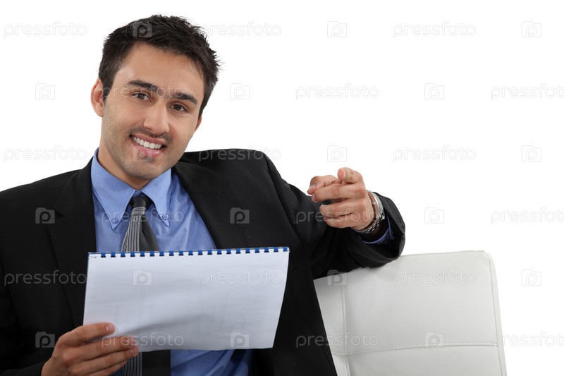 Бизнесмен указывает в камеру
