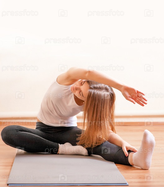 Женщина занимается йогой