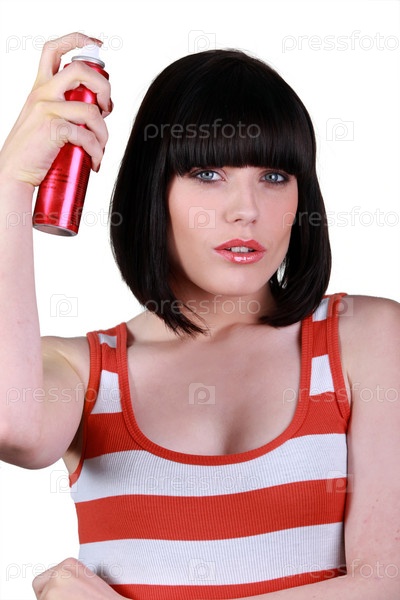 Женщина использует лак для волос