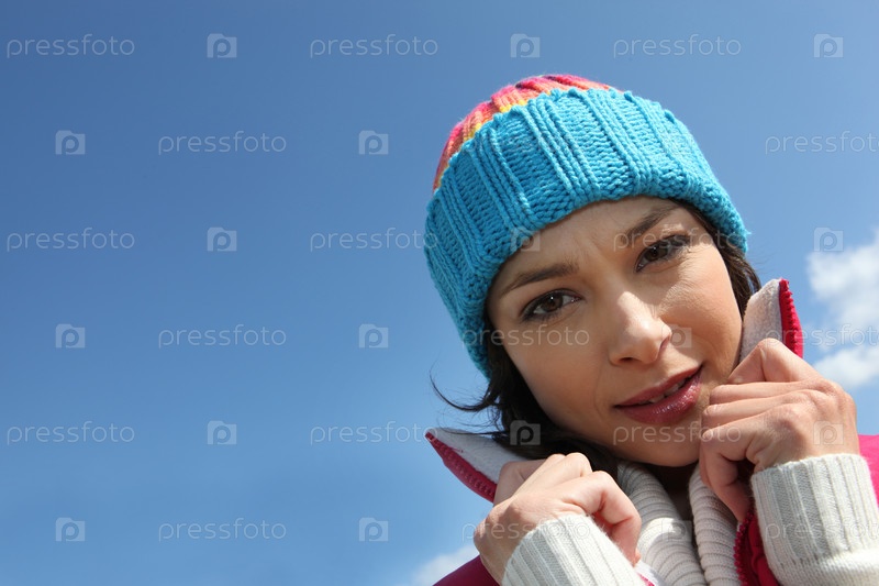 Женщина в шерстяной шапочке на природе