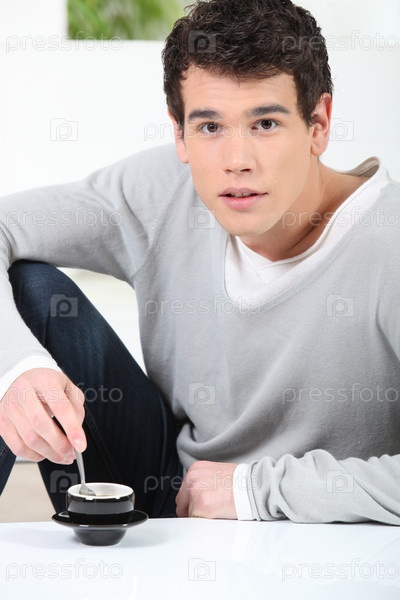 Молодой мужчина с чашкой кофе