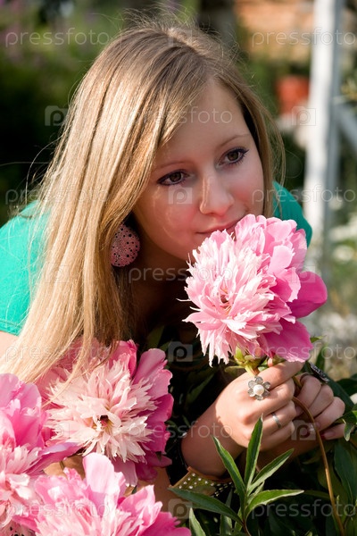 Девушка с цветами в саду