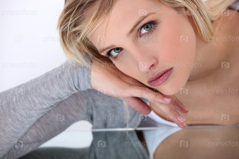 Портрет сельезной симпатичной блондинки