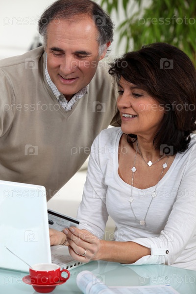 Пожилая пара делает покупки в интернет магазине