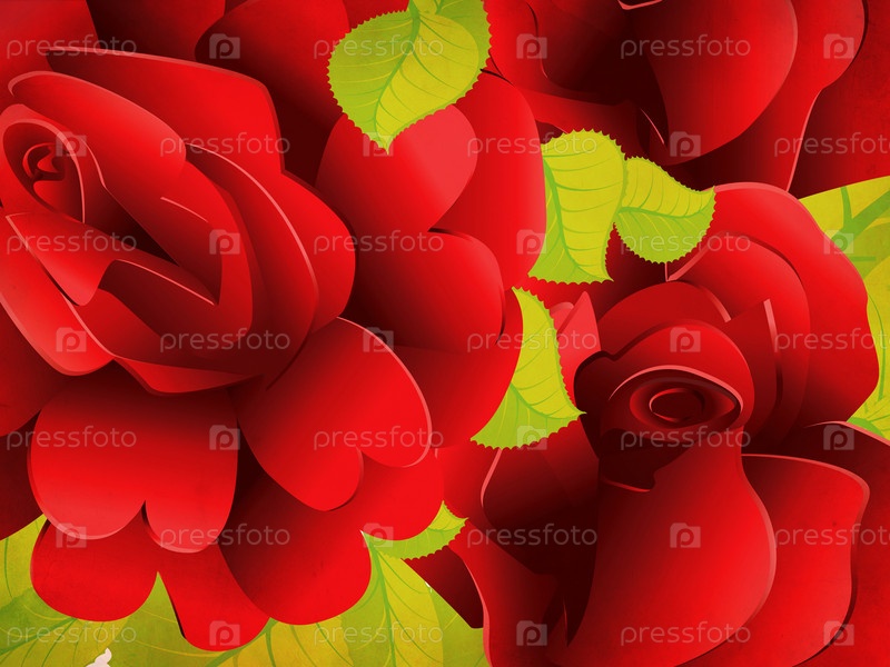 Красные розы с листьями
