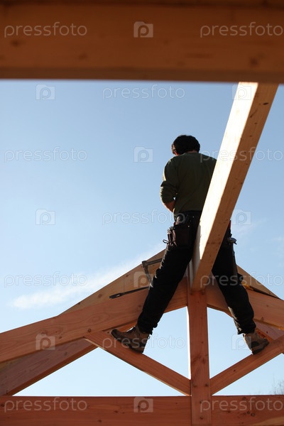 Строитель, сидящий на балке