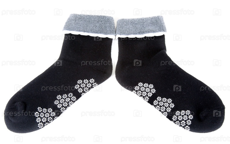 Пара теплых носок с рисунком на белом фоне
