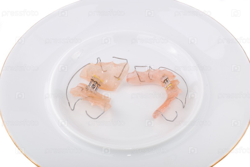 Зубные пластины для выравнивания зубов на белом фоне