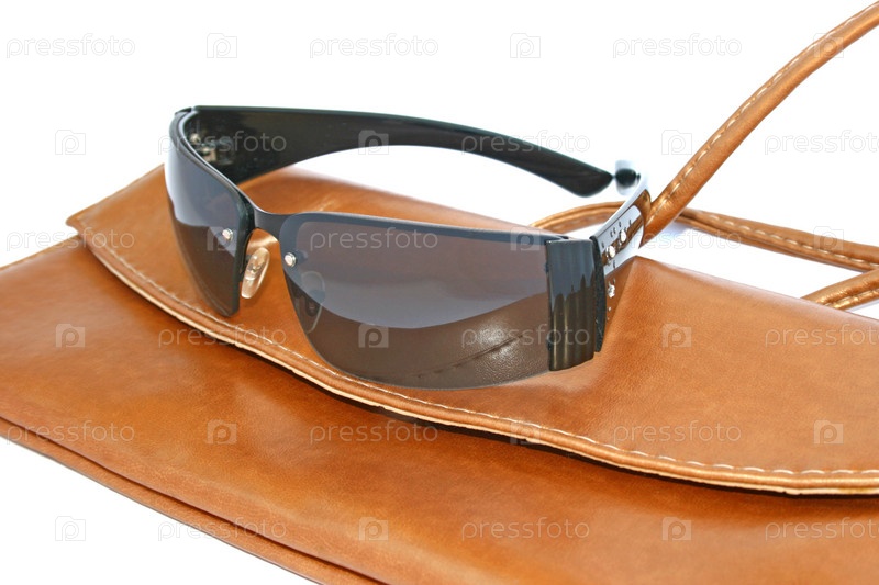 Солнечные очки на коричневой кожаной сумочке