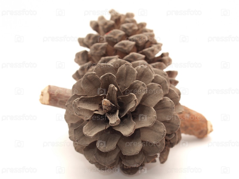 Еловые шишки на белом фоне