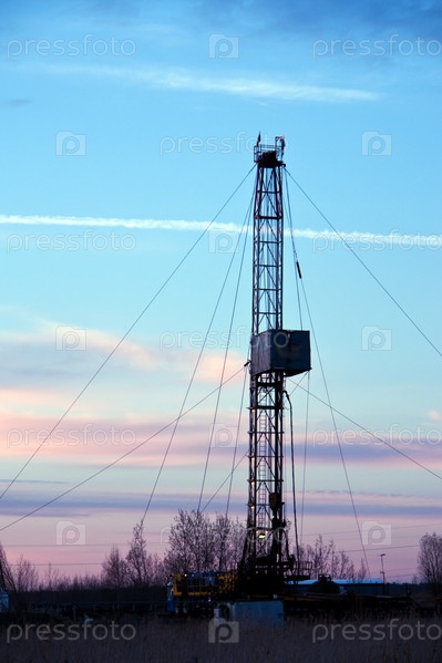 Буровая установка на фоне заката