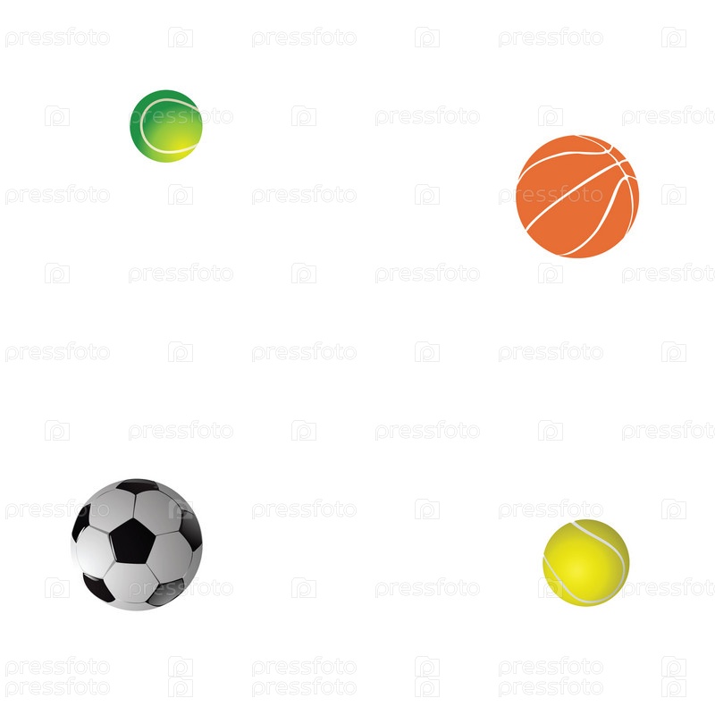 Теннисный, футбольный и баскетбольный мячи на белом фоне