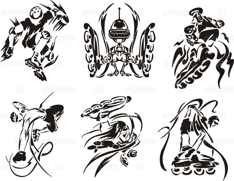 Роликовые коньки, экстремальные виды спорта, векторная иллюстрация
