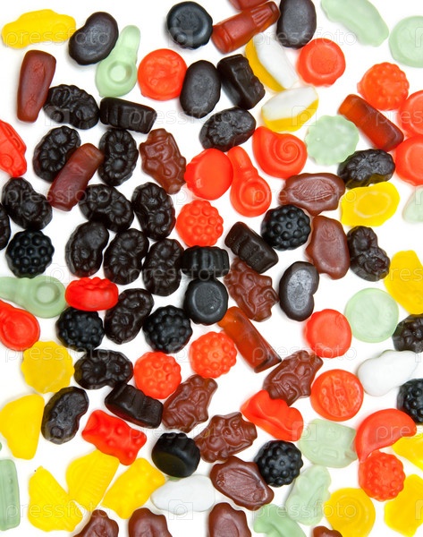 Цветные конфеты на белом фоне