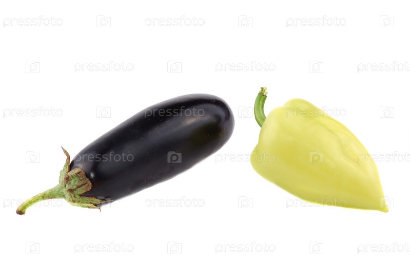 Зеленый перец и баклажан на белом фоне. Овощи